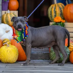 This girl is truly one-of-a-kind. Meet Maddie, a 4-year-old hairless pit bull mix. This big mama is 48 pounds of pure goofy love. When she walks into a room she wants one thing and one thing only: L.O.V.E. Maddie gets along well with everyone she meets, including other dogs. She does well on a leash and is just looking for someone to adore her (easy to do!). Maddie is going to make someone feel eternally special with her big heart.